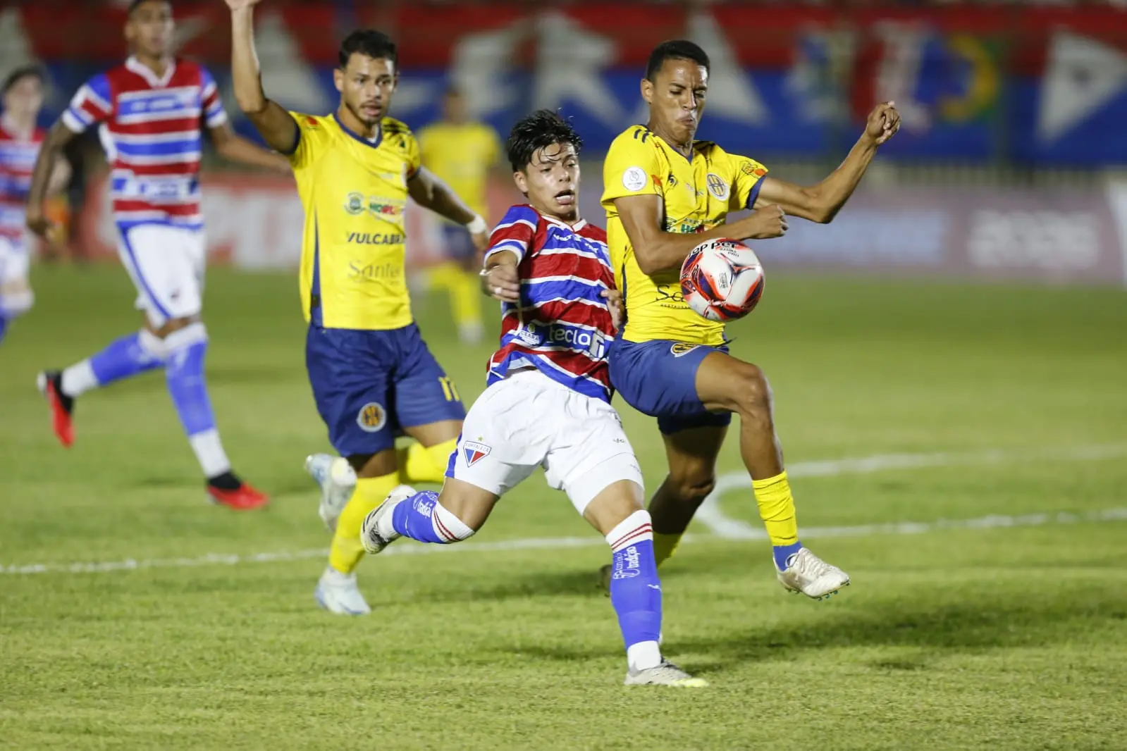 Em um duelo marcado por muitas faltas e cartões — foram cinco amarelos —, o Fortaleza administrou a vantagem e foi para o intervalo mantendo o 1 a 0 no placar, mesmo com o jogo bastante amarrado.