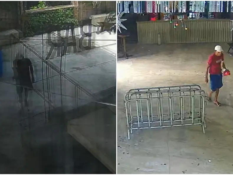 A ação criminosa foi registrada por câmeras de segurança, que mostram o suspeito circulando pelo local e recolhendo os itens. De acordo com um dos sócios do estabelecimento, a invasão aconteceu por volta das 13h30, após o portão ter sido violado.
